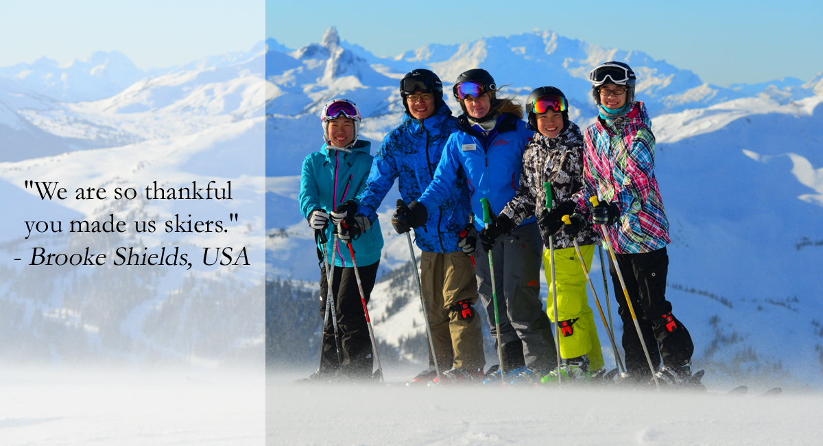 "Thank you for another great week. I especially appreciate your patience with all of us. Your kindness and positive attitude just can't be beat. We love coming to Whistler and skiing because of you."